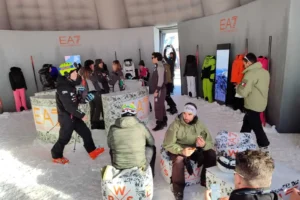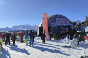 Per questo progetto abbiamo progettato e realizzato uno stand gonfiabile che ricorda un igloo, in grado di offrire uno spazio di circa 120 mq di area calpestabile interna, una lounge per i test di performance dei prodotti dell’EA7 e per l’esposizione delle collezioni di abbigliamento per lo stile sugli sci e snowboard.