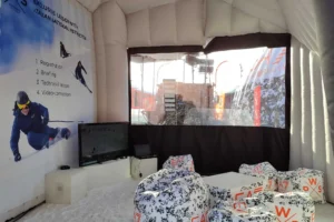 L’utilizzo dei gonfiabili sulla neve è sicuramente molto pratico; in pochi minuti la struttura si gonfia e offre spazi chiusi di dimensioni importanti.
